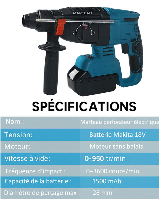 Perceuse |Marteau-Perforateur Brushless 26 mm Sans Fil : Puissance Professionnelle, Liberté Totale & Performance Ultime Compatible Makita 18V