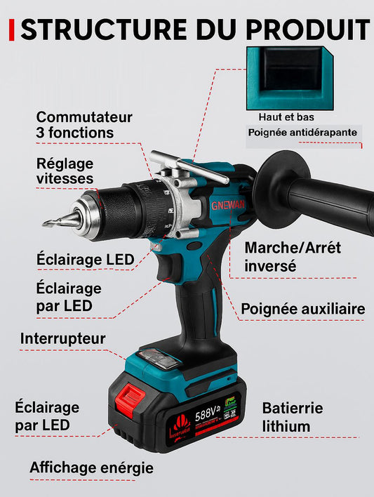 Perceuse| ProDrill-Perceuse Électrique Brushless 1500W – 650Nm de Couple pour un Travail Pro Sans Effort